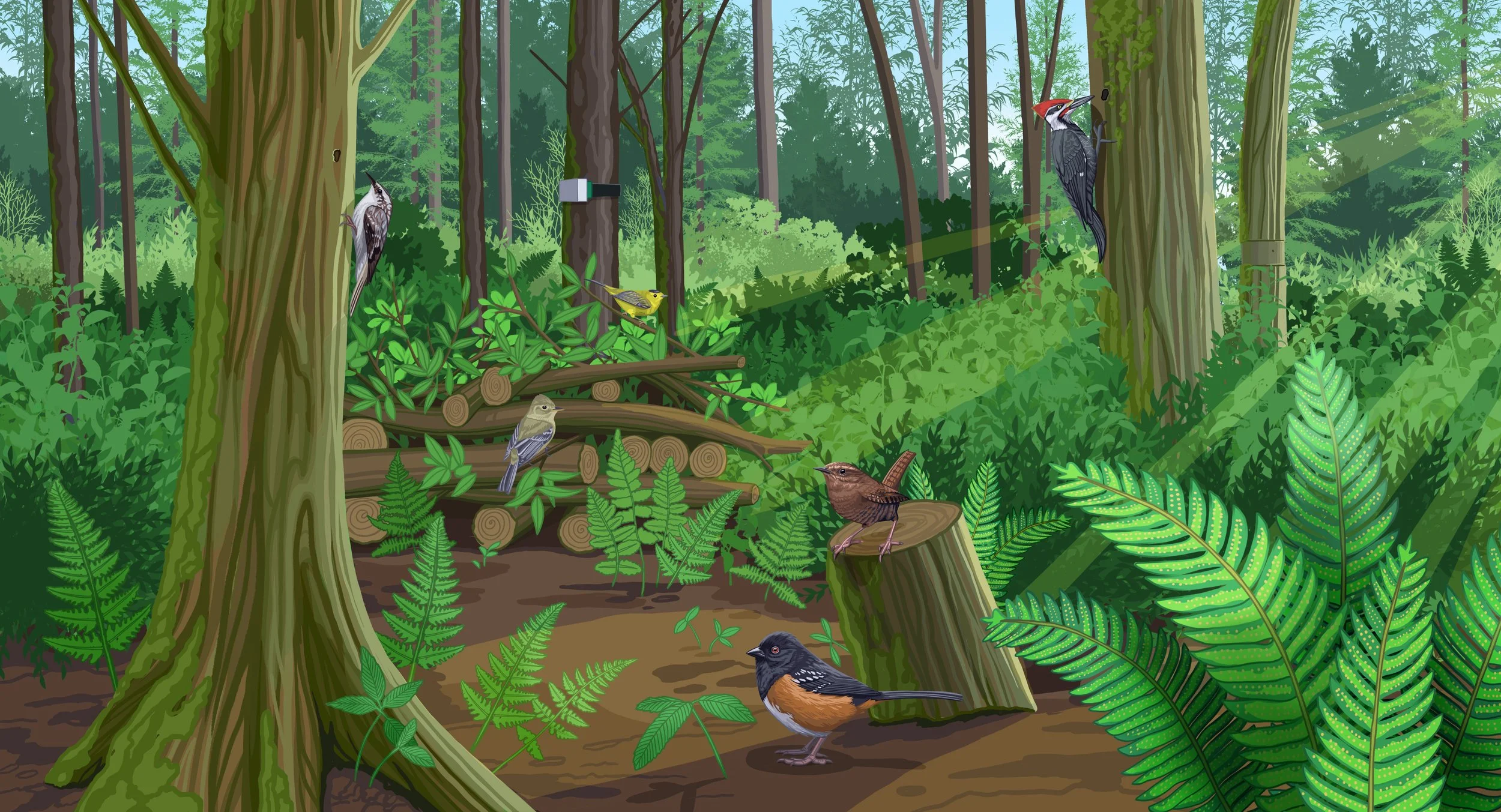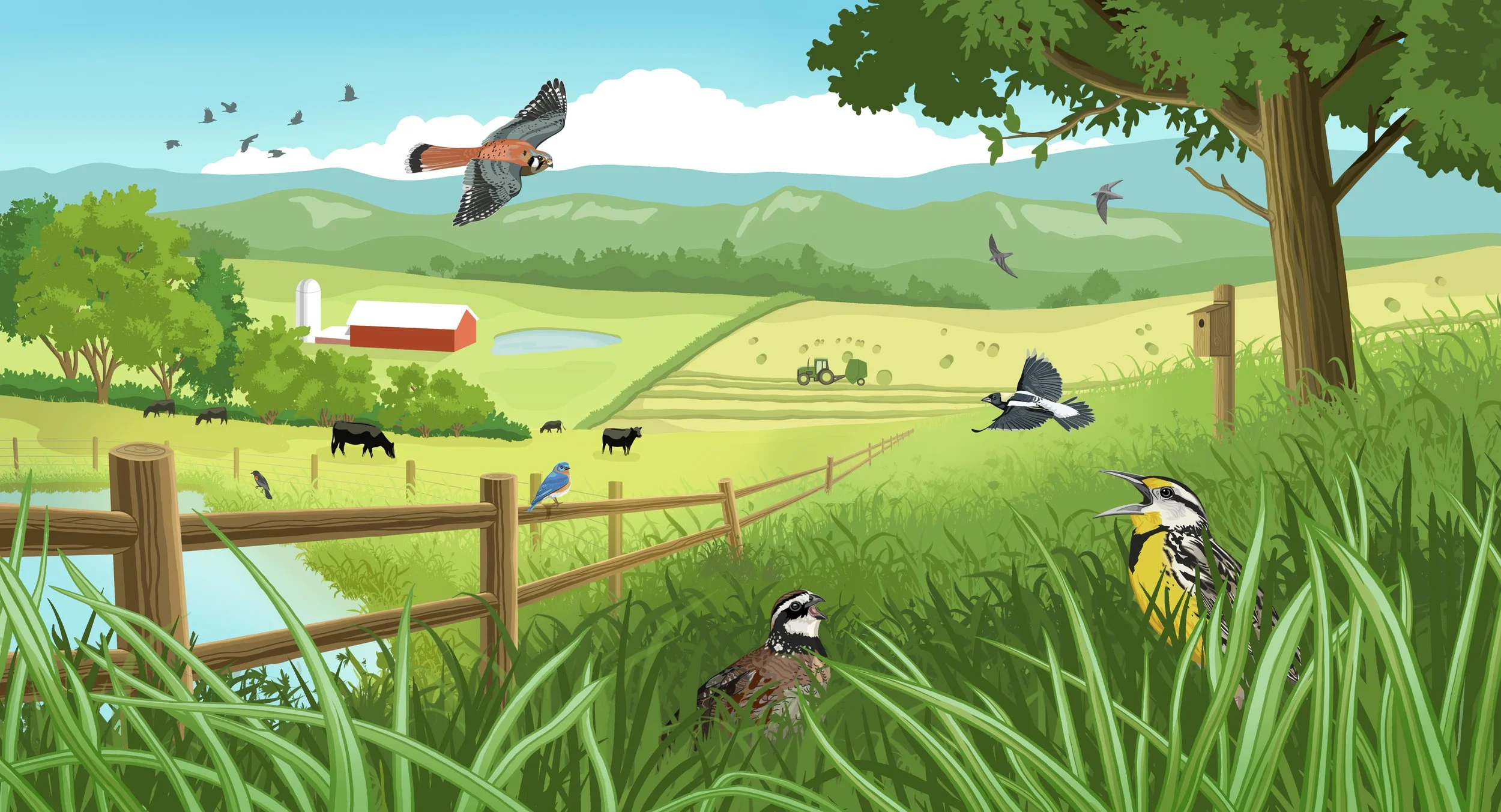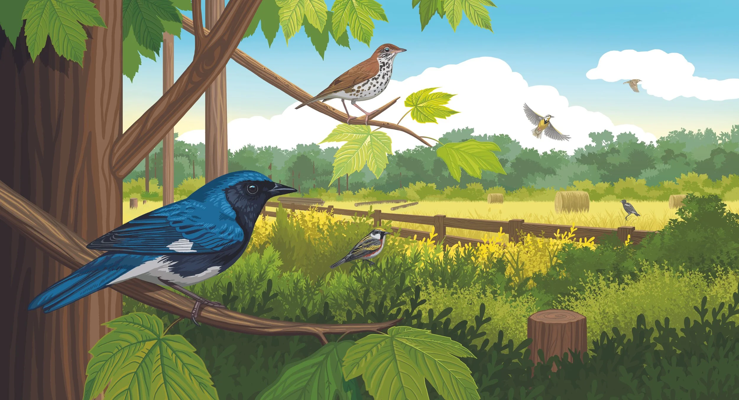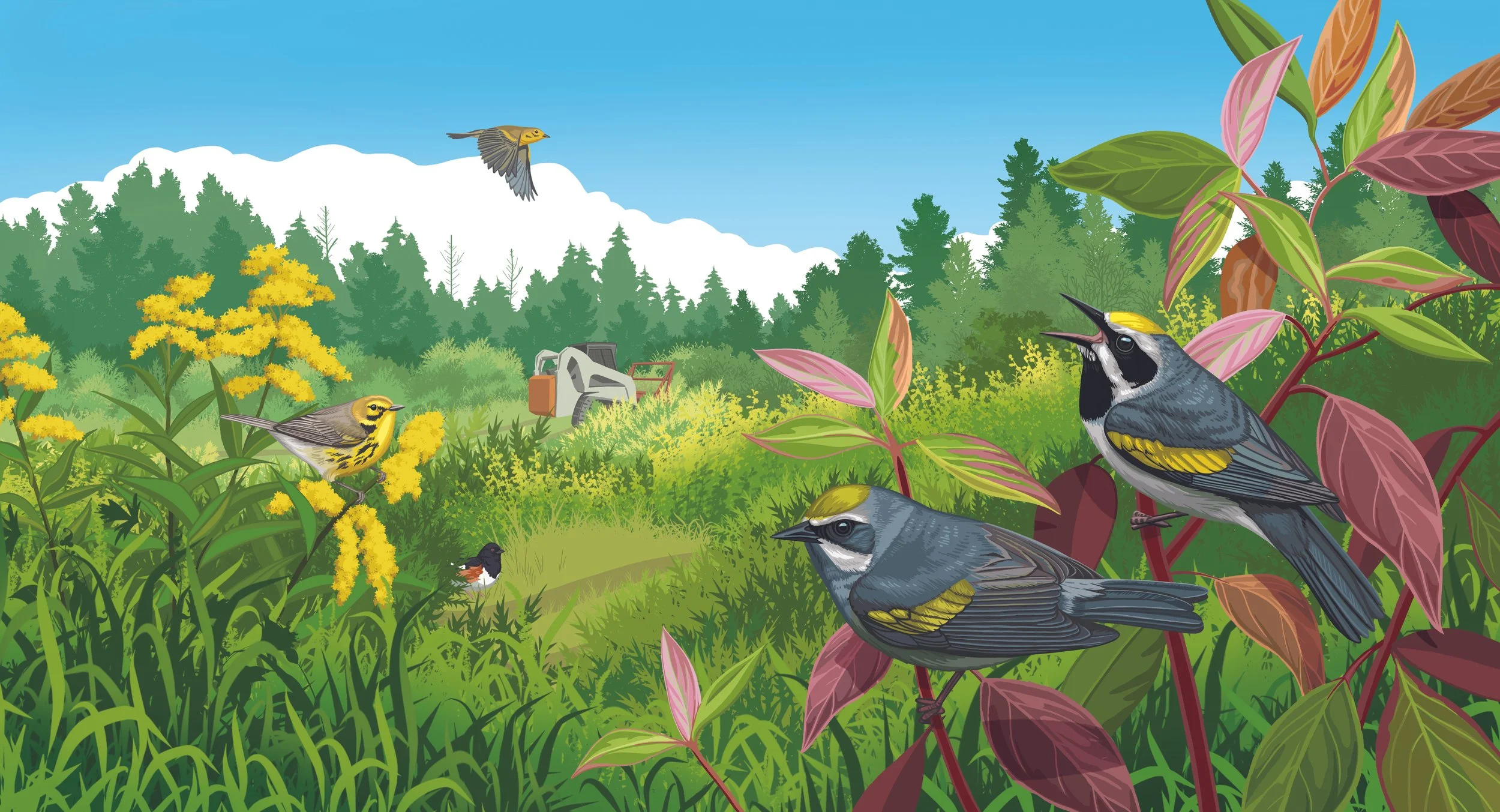 Illustrated banners for the Cornell Lab of Ornithology Land Trust Initiative collaboration.